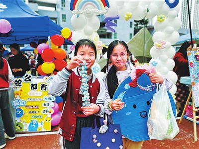 本报讯(记者余沁霖)近日,香洲区甄贤小学举办了一场别开生面的“创意市集”活动。各班摊位装饰缤纷多彩,海报醒目,“小掌柜”们热情招呼往来“顾客”,积极推介自己带来的闲置物品。