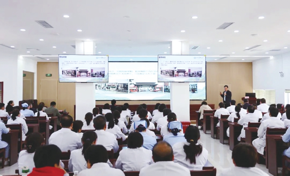 4月2日下午,河北中医药大学、河北省中医院相关领导率调研组一行7人到邢台市中医医院进行专题调研指导。邢台市卫生健康委相关负责人,邢台市中医医院党委副书记、院长王庆周及医院领导班子成员,市卫生健康委中医科、市中医药发展中心相关负责同志陪同调研。在主院区,河北中医药大学、河北省中医院相关领导为邢台市中医医院中层骨干人员做了题为《强基铸魂擎旗奋进党建领航推动医院高质量发展》的专题讲座,重点从文化建设、战略化管理、服务能力提升等方面分享了省中医院的经验做法,有很强的针对性、指导性和实践性,为做好新时期中医医院工作指明了方向,厘清了思路。调研组专家还深入多个重点科室,实地考察了中医特色诊疗技术的发展情况、科室建设和设备配置。每到一处,调研组都与医护人员进行深入交流,详细了解医疗服务流程、人才培养以及患者治疗效果反馈等方面的实际情况。