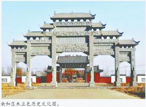 二是留有皇帝御赐的“平定边疆坊”“天恩覃敷坊”和“金吾世胄坊”三座高大宏伟的功德石牌坊,彰显朱正色的卓越功勋。明清两朝时期,邢台地区流行着“顺德府好城墙,南和县城好牌坊”的口头禅。南和县(今南和区)先后建有牌坊36座,直到新中国成立后,南和县城内依然保存完好的牌坊7座,分布在南和县城的府前街,其中的3座就是属于朱正色家族的石牌坊。
