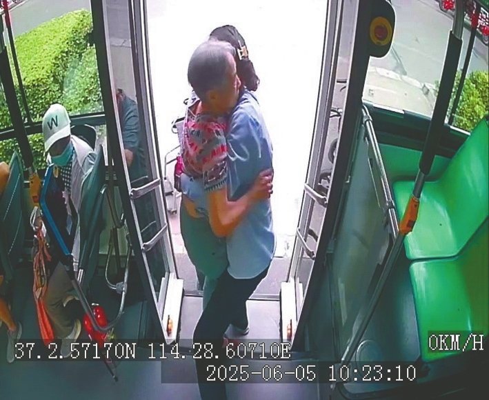本报讯6月5日,在邢台华赢公交集团公交二公司24路车上,驾驶员韩晓丽的“一抱”,让公交车有了温度,守护了乘客的安全,也展现了邢台公交人“老吾老以及人之老,幼吾幼以及人之幼”的情怀与责任。