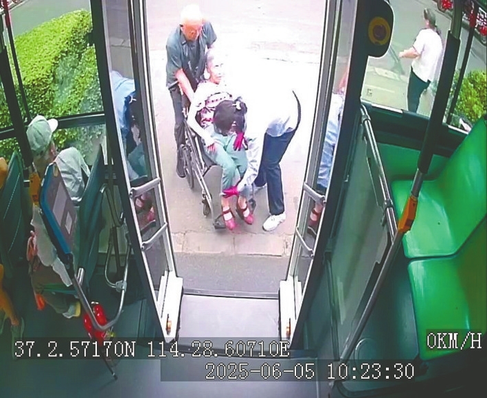 当天10时许,24路“阳光姐妹亲情线”驾驶员韩晓丽驾驶的公交车缓缓停靠在行署家属院公交站。车门开启,一对老年夫妇的身影出现在车门前,只见老大爷推着坐轮椅的老伴儿准备上公交车。