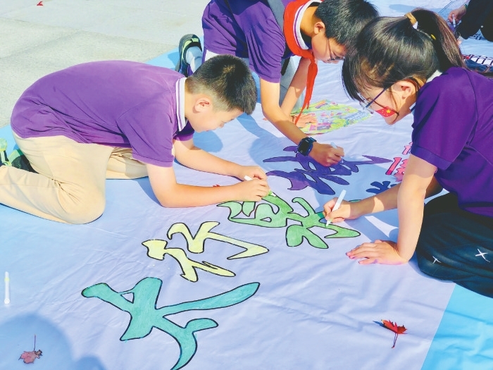 创造营不仅是运动的赛场,更是美育与文化实践的生动课堂。在城市规划广场,“百米长卷庆国庆,童心绘就爱国情”活动温情上演,百余名小学生与家长齐聚,用画笔描绘对祖国繁荣的祝愿、对家乡邢台的赞美。