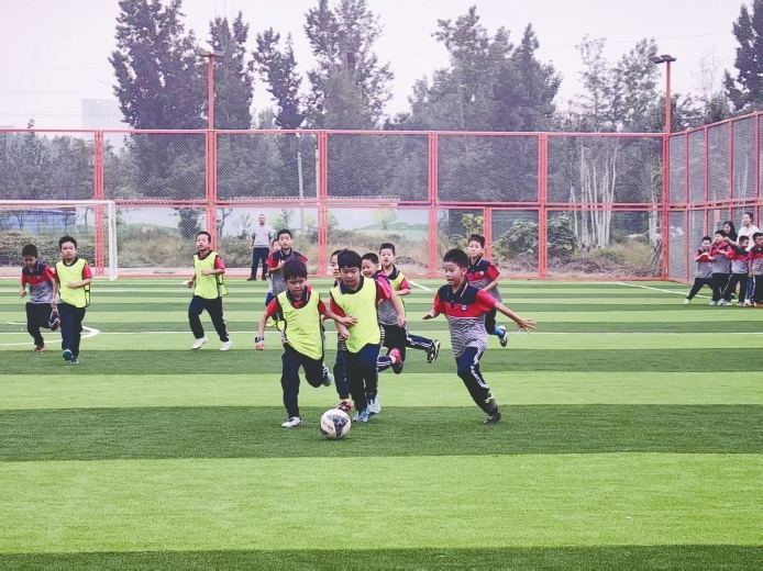 近日,在邢襄生态园足球场上,郭守敬小学2025年“校长杯”班级足球联赛火热开展。 (武雯摄)