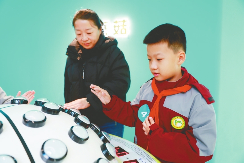 动态视力挑战区热闹非凡。投壶、套圈、吸盘飞镖等经典游戏经过重新设计,变成锻炼孩子手眼协调和视觉追踪能力的好方法。孩子们玩得尽兴,家长也意识到,“动静结合”对保护视力原来这么重要。