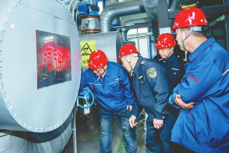 近日,信都区市场监管局执法人员现场查看换热器运行情况。供暖季即将开始,信都区市场监管局在辖区开展特种设备专项检查,筑牢供暖安全防线。(霍红军 牛旭霞 摄)