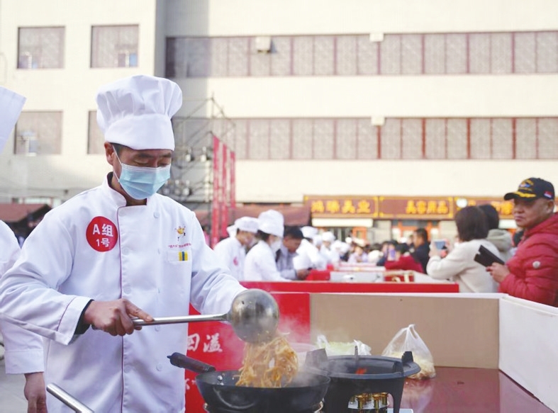 “我做焖饼已经40年了,用的是老家传下来的配方,饼丝要手工切得粗细均匀,炒的时候要‘颠三颠、翻三翻’,才能保证根根分明不粘连。”来自巨鹿的选手付占平师傅一边快速翻炒,一边向围观市民分享秘诀。