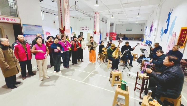 冬日下午,阳光斜照。走进襄都区牛市新街社区的负一层活动室,一阵高亢的笙笛声先撞进耳朵。电梯门开,眼前豁然开朗:二胡弓弦颤动,中阮清音流淌,三弦脆亮,笛声悠扬。众多民族乐器交织成一片声的海洋,演奏者更是神情专注,沉浸其中。