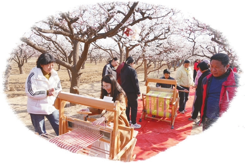 在杏园,万亩杏花竞相绽放,粉白花瓣缀满枝头,花香四溢,宛如春日仙境。旗袍走秀队伍身着华服漫步杏林,优雅身姿与花海相映成趣,尽显东方美学;品茗区茶香袅袅,游客们在杏花树下品味香茗,感受春日惬意;手工织艺区,非遗传承人现场展示传统织造技艺,游客可亲手体验编织乐趣,感受传统文化魅力;古筝演奏区,悠扬琴声在林间回荡,与杏花美景相融,营造出静谧雅致的氛围。