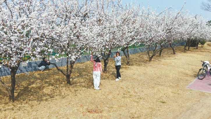据市园林中心工作人员介绍,山杏树耐寒易活,是城市绿化的重要树种,也是市区春季开花较早的花木之一,被誉为“春日报信员”。眼下正是赏山杏花好时节,滨江路、邢州大街、东华路等街道,以及百果园、清心泉园等10余个游园内皆可觅得其芳踪。
