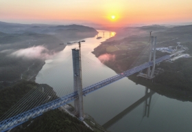 18日,由中铁十一局承建的西安至十堰高速铁路(简称“西十高铁”)汉江特大桥钢桁梁顺利合龙。汉江特大桥位于湖北省十堰市,跨越丹江口水库库区,是西十高铁全线控制性工程,全长917.45米,主跨420米。
