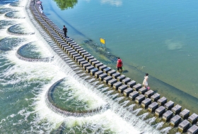 8月17日,永州市道县梅花镇贵头村,游客在叠水汀步桥上游玩。近年来,道县以幸福河湖建设为抓手,推动“生态+旅游”融合发展,激活田园山水观光经济,将青山绿水转化为富民之水,绘就乡村振兴新画卷。文、图/通讯员蒋克青