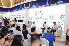8月17日,2025年上海书展现场,由湖南科学技术出版社主办的“电线杆上的鸟类科学课:上海城市观鸟与鸟类科普阅读分享会”在书展现场中央大厅的湖南展台举行。