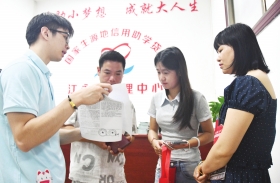 8月19日,永州市江永县学生资助管理中心,志愿者在为大学新生和家长讲解生源地信用助学贷款办理程序。连日来,该县学生资助管理中心精心组织业务人员,按照“应贷尽贷、应助尽助”的原则,实行一站式服务,一次性办理,确保每位经济困难学子在开学前办好助学贷款。