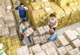 8月25日,在永州市道县新华书店仓库,工作人员在搬运新学期教材。 开学在即,各地积极做好各项准备工作,家长和孩子纷纷购买学习用品,迎接新学期。图/新华社