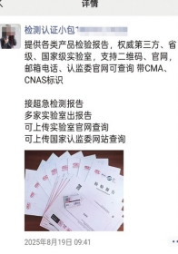 记者深入调查后,竟发现了一条虚假的检验检测产业链:客户提出需求,检验检测机构量身定做,只要花几百元,无须送检就可以“炮制”出一份合格的检测报告。检测报告不仅在报告上提供的网站上可查,甚至可在国家市监总局官网上查到编号。
