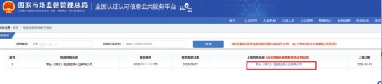 襄阳市高新区市场监管局团山市监所工作人员表示,将尽快进行调查。之后工作人员答复称,湖北擎云公司否认出具虚假报告,“(他们说)目前还未出具一份报告,公司也是刚收到下发的CMA资质证件”。记者注意到,在反映情况之后,报告上的网址已无法打开,20日又开放查询,之前显示为湖北擎云公司出具的救生衣检测报告编号在市场监管总局官网上已无法查询。