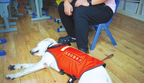 “糖糖坐!”长沙一家康复中心,下课铃声响起,几个孩子挤在一只名叫糖糖的拉布拉多犬身边。与多数犬不同,面对零食诱惑、孩子们的叫喊甚至揪扯,它没有过多反应,而是安静地将头搭在孩子腿上。