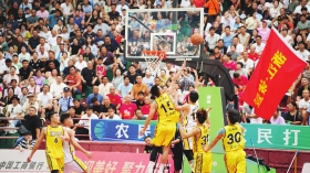 27日晚,大地流彩·2025年全国和美乡村篮球大赛(“村BA”)南部赛区赛事在怀化市辰溪县孝坪镇收官。当日,东道主湖南辰溪代表队以119∶116战胜浙江诸暨代表队收获季军,并成功晋级将于10月在贵州省台江县台盘村举办的“村BA”全国总决赛。图/记者王贯宇
