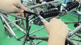 车队陈同学主要负责车辆框架的焊接工作,他介绍,这辆赛车的焊接点有一百多处,螺丝等接口也有百余处,焊了半个多月。“焊过劲,就会烧穿,焊不够就是虚焊,如果跑起来,车辆可能存在解体的隐患。”