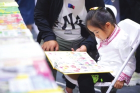 这一刻,喧闹的展台化为安静的书房,伴随窸窣的翻书声,两代人各自遨游于文字世界——所谓阅读,有时不在声声催促,而在无声的陪伴与示范之中。