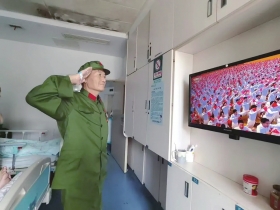 本报长沙讯 9月3日上午,纪念中国人民抗日战争暨世界反法西斯战争胜利80周年大会在北京天安门广场隆重举行,以盛大阅兵仪式,同世界人民一道纪念这个伟大的日子。 在湖南省人民医院病房里,当电视直播画面开启,61岁的退伍老兵陈新开起身站立,敬了一个军礼! “现在我们国家强大,经济发展快,国防建设强,武器装备先进,我感到很自豪。”陈新开说。 文、图/通讯员周瑾容