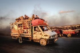 当地时间9月3日,加沙城,以色列的猛烈袭击,迫使巴勒斯坦民众沿着拉希德街从加沙北部向中部撤离,他们带着有限的随身物品,乘坐车辆、马车或步行,经拉希德街向加沙中部迁移。文、图/视觉中国