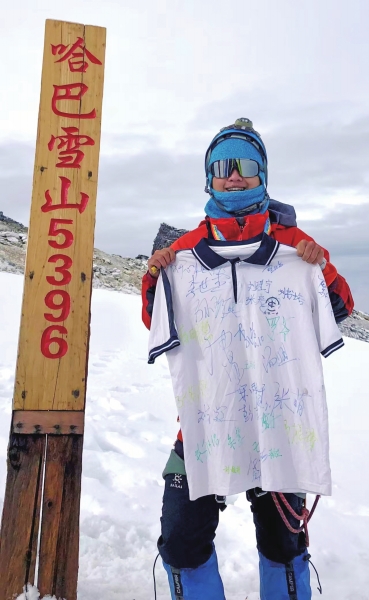 2025年教师节前夕,长沙铁路第一中学的老师们收到了一份来自云端的特殊问候——该校2025届高中毕业生杨景茗成功登顶海拔5396米的哈巴雪山,随身携带的签名校服承载着对恩师们的深切感恩。图/受访者提供