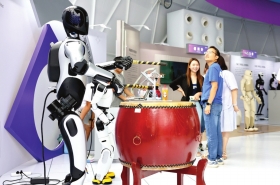 9月10日,机器人小镇展区的机器人在表演敲鼓。9月10日至9月13日,2025Inclusion·外滩大会在上海黄浦世博园区举行。本届外滩大会除开幕主论坛、开放见解论坛和AI科创系列赛事等活动外,还有近200家科技企业携超30项科技新品在科技主题展亮相,与会者还能在大会设置的机器人小镇和科技集市上,领略人工智能领域的前沿科技。图/新华社