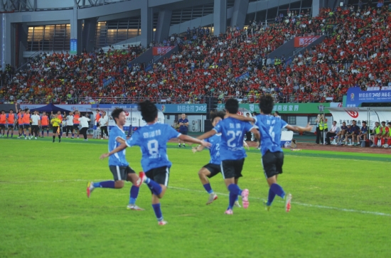 9月12日,邵阳队主场迎战湘潭队。在球迷热烈的助威声中,邵阳队全力拼搏,于第93分钟由唐于尧接队友传中头球破门,完成绝杀,最终以2:1战胜湘潭队,夺得主场首胜。