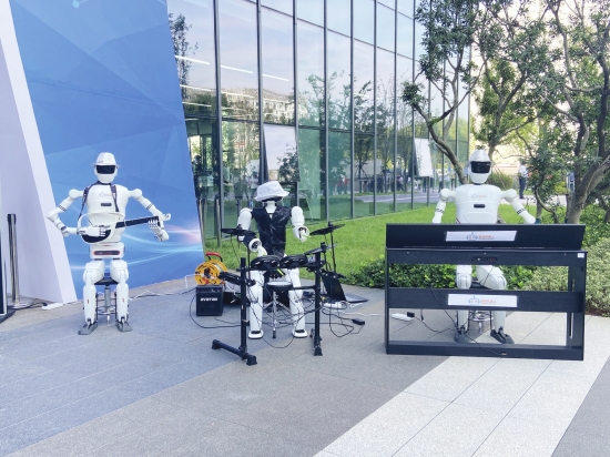 机器人体验中心门前,湖南超能机器人技术有限公司首支完全由人形机器人组建的乐队——“超人乐队”登台亮相,成为全场焦点。“超人乐队”由钢琴演奏机器人、吉他演奏机器人、架子鼓演奏机器人及主控制器模块组成,可流畅演奏《我和我的祖国》《孤勇者》《童年》等多首经典曲目。作为湖南省智能机器人行业头部企业,超能机器人已成功推出覆盖全生命周期的健康服务机器人系列产品、巡检运维机器人、工业协作机器人、智能安保机器人等代表性产品,广泛应用于康养机构、学校、机场、大型舰船、隧道管廊、工业产线等多类场景。