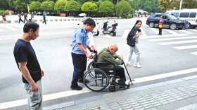 考虑到老人行动不便,民警迅速推出站内常备的便民轮椅,然后半蹲在老人身边,仔细调整座椅高度和脚踏板的位置,反复询问老人的感受,直到老人点头说“舒服”才停下手中的动作。“你们想得太周到了,不耽误我看国庆的韶山!”老先生坐在轮椅上,望着广场上飘扬的五星红旗,疲惫的脸上渐渐绽开笑容,他郑重地向民警竖起了大拇指,这简单的动作里,满是对民警工作的认可与感谢。