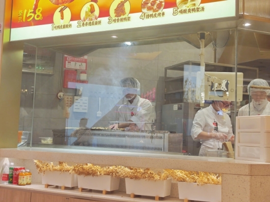 在门店明档区,记者可见员工现场穿制羊肉串并在炉火上烤制的过程;儿童餐“牛肉焖饭”中的牛肉也由原先的预制酱改为现场炒制。当天,记者所点的五道菜品全部上齐共计等待约40分钟。