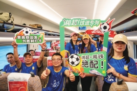 9月27日,G6171次载着300余名岳阳球迷从岳阳东站缓缓驶出,前往衡阳观看赛事,赛后他们集体搭乘G9622次“球迷专列”返回岳阳。这是长沙火车南站首次为湘超联赛定制开行的高铁球迷专列。 图/受访单位提供