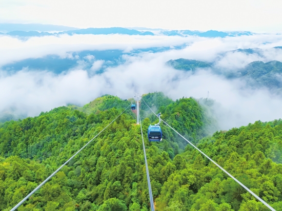 节日期间,湖南各地游人如织,多个景区火爆出圈。其中,被誉为“全球最长高山索道”“中国最长索道”的雪峰山索道尤为突出。数据显示,截至10月6日,其游客接待量突破8万人次。由于游客量激增,索道门票连日来“开票即售罄”,多家媒体争相报道,该索道成为湖南旅游市场的一大“现象级”项目。 图/文旅湖南微信公众号 A02