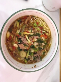 店员给记者端来一份韭黄炒肉汤面。组图/记者武华康