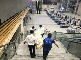 然而,救援进程比预想中更为紧迫。4时05分左右,列车工作人员紧急传来消息:孕妇已在车厢内产下一名男婴,但母子二人仍需专业医疗处置,情况危急。时间就是生命,从休息状态迅速切换到“战斗模式”的3名工作人员,当即分工协作、分头行动:覃君直奔西广场落客平台,提前等候并引导120救护车,以防救护车因不熟悉路线延误时间;张靖火速返回值班室,取来干净被子为产妇和新生儿保暖;黄峰则快步赶往服务台,熟练地搬运应急担架,为后续转运做好准备。