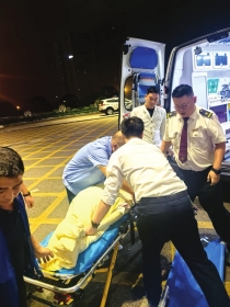 4时18分,120救护车准时抵达长沙南站。早已在应急通道等候的黄峰,立即打开大门引导医护人员快步登车,医护人员随即对产妇和新生儿进行初步检查与消毒、保暖等简单处置。经过专业评估,母子二人生命体征平稳。4时26分左右,现场处置完毕,张靖、黄峰和刚被通知赶来支援的领班方俊,以及路过主动搭手的中铁快运工作人员,一同小心翼翼地将产妇和包裹着被子的新生儿抬下列车,平稳转移至担架上。
