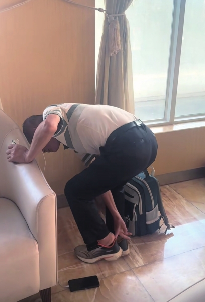黎灿告诉记者,他居住在柬埔寨金边,承包了一家酒店的餐厅。10月7日,肖爹爹走进该酒店寻求帮助,他旁边还坐着一名当地人,等着他支付打“嘟嘟车”(当地一种交通工具)的钱,一共是15美元。