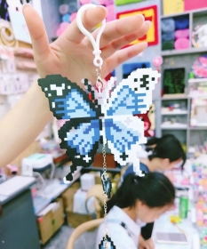 玩家们把五颜六色的塑料颗粒拼成像素画,再烫压成钥匙扣、冰箱贴、行李牌等。组图/湖南湘江新区微信公众号