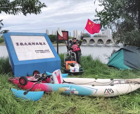 “我们到北京了!”10月17日,吴晓亮终于抵达京杭大运河北起点,他一边挥舞着国旗,一边大声欢呼。