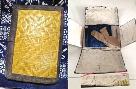 当时间回到一年前——2024年11月6日晚,米青东在二手交易平台以50元购得的一件灰缬蓝布夹包到货。这个被卖家标注为“旧鞋样夹”的老物件看似普通,米青东拆开布夹包后,惊讶地发现鞋样夹中有一些发黄的旧纸片,上面写满了日语,仔细识别有“泰安镇”“克山病”“破伤风”等字样。