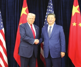 特朗普表示,很荣幸同习近平主席会面。中国是伟大国家,习主席是受人尊敬的伟大领导人,也是我多年的好朋友,我们相处非常愉快。美中关系一直很好,将来会更好,希望中国和美国的未来都更加美好。中国是美国最大的伙伴,两国携手可以在世界上做成很多大事,未来美中合作会取得更大成就。中国将举办2026年亚太经合组织领导人非正式会议,美国将举办二十国集团峰会,乐见双方取得成功。
