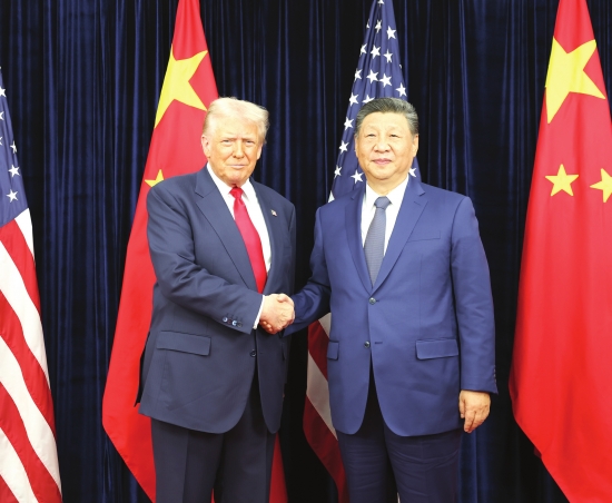 当地时间10月30日,国家主席习近平在釜山同美国总统特朗普举行会晤。图/新华社