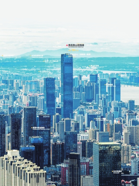 能见度好的时候,长沙国金中心能与百公里外的衡山同框。 图/晟龍