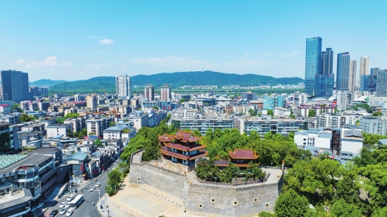从岳麓山顶往东眺望,目光穿过湘江、橘子洲,对岸是城市中心。城市天际线从北逶迤而来,在国金中心附近形成高耸集聚的地标建筑群。往南,天际线高度下降,变得平缓。这片扇形视线区域,以天心阁为圆心,岳麓山南北区域为边界,是长沙建筑控高最严格的古城风貌区,建筑高度控制在18米以下。河西的岳麓山与河东的古城隔江对望,自然与人文在此交融,共绘出长沙独特的“山水洲城”画卷。这片古城风貌区,被南北现代建筑环抱。国金中心建筑群的昂扬、古城区的舒缓以及南湖新区的蓄势待发,共同构成了起伏有致、富有节奏感的城区建筑天际线。这种“环抱式”的城市空间结构,是对城市轮廓线的精雕细琢,更是对历史的尊重和致意。