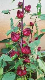一村民家房前有盛开的重瓣木芙蓉。湖南自古广为种植木芙蓉,有“芙蓉国”的美誉,芙蓉也成了湖南省省花。对面池塘边矗立着一座九郎庙,我们由屋后开始登山。山脚处有一大丛盐麸木,当下时节,它的果实已成熟。我们尝了下,带有咸味。在古时,盐麸木曾经是盐巴的替代品,补充人们对于食盐的需求。