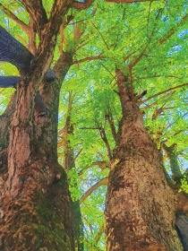 我把这枝银杏插在案头的花瓶里,欣赏玩味了好久。我伏案写作的时候,抬头望到这枝银杏,觉得自己敲出的文字也有了错落有致的味道。这是属于我的案头清供,无疑起到了怡情悦性的作用。这样的书房小景,并非刻意为之,而是随手拾得。外面的银杏树很多,随便一片银杏叶都带着季节的容颜和温度,而一枝银杏有更丰富精彩的姿态。这一枝银杏,在外面你可能觉得它很寻常,可是带回来就感觉把草木的气息和光阴的味道带回了家。清代的袁枚诗中说:“残红尚有三千树,不及初开一朵鲜。”残红再多,也不如初开的那朵新鲜。从外面拾回来的银杏,上面藏着时令的密码,代表着居室外面的世界。