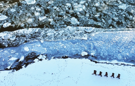 近日,黑龙江干流各江段陆续进入流冰期,江面上形成壮观的“跑冰排”景观。10月30日,黑龙江出入境边防检查总站黑河边境管理支队花园边境派出所民警在“跑冰排”的黑龙江黑河段江岸边巡逻。