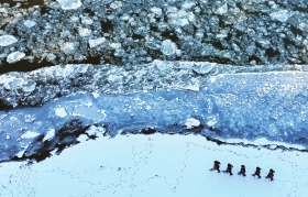 近日,黑龙江干流各江段陆续进入流冰期,江面上形成壮观的“跑冰排”景观。10月30日,黑龙江出入境边防检查总站黑河边境管理支队花园边境派出所民警在“跑冰排”的黑龙江黑河段江岸边巡逻。 图/新华社