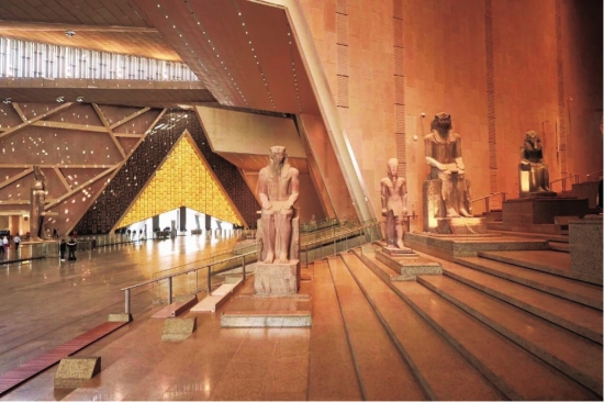由于1902年在开罗市中心建成的埃及博物馆在空间和功能上不能满足展览需求,埃及政府于本世纪初在开罗西南约5公里处的吉萨金字塔景区附近兴建大埃及博物馆,后因资金、政治、疫情等挑战,历时20多年才建成开馆。